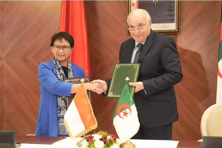 Foreign Affairs Minister Retno Marsudi meets with her Algerian counterpart Ahmed Attaf in Algiers on Dec. 20, 2023. (Photo Courtesy of Foreign Affairs Ministry)