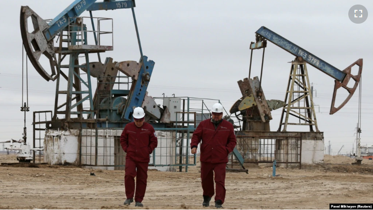 Workers walk near oil pumps at the Uzen oil and gas field in the Mangistau region of Kazakhstan. (file photo)Officials in an eastern Kazakh region say gas expor