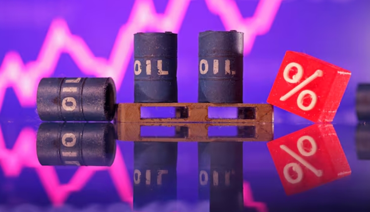 Miniatures of oil barrels and a rising stock graph are seen in this illustration taken January 15, 2024. REUTERS/Dado Ruvic/Illustration/File Photo Purchase Lic
