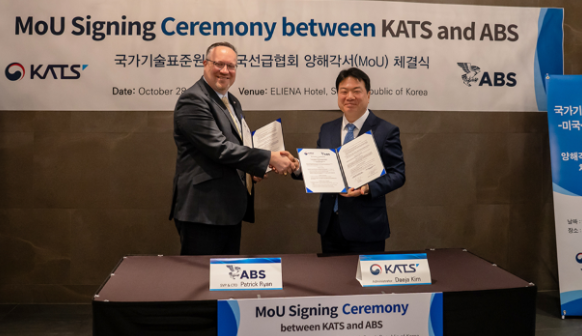 The American Bureau of Shipping (ABS) and the Korean Agency for Technology and Standards (KATS) have signed a memorandum of understanding (MoU) to promote inter