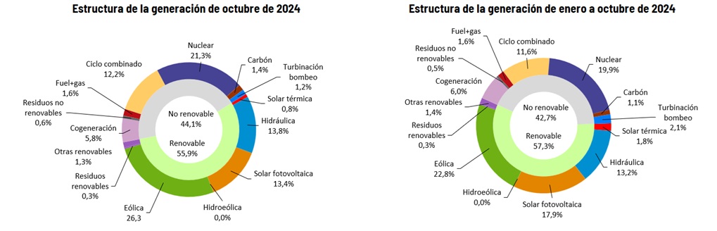 During this month of October, renewables have generated 15.4% more than in the same period of the previous year and have accounted for 55.9% of the monthly mix.