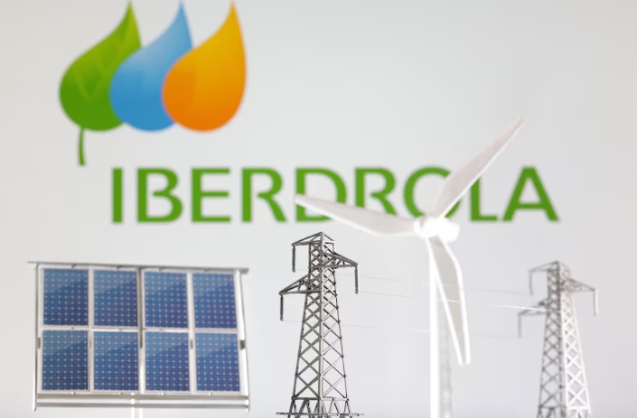 Miniatures of windmill, solar panel and electric pole are seen in front of Iberdrola Renewables logo in this illustration taken January 17, 2023. REUTERS/Dado R