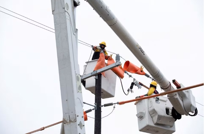 Energy crews work on electric line repairs after ice storms and freezing rain in the South left thousands without power and turned roadways into ice rinks durin