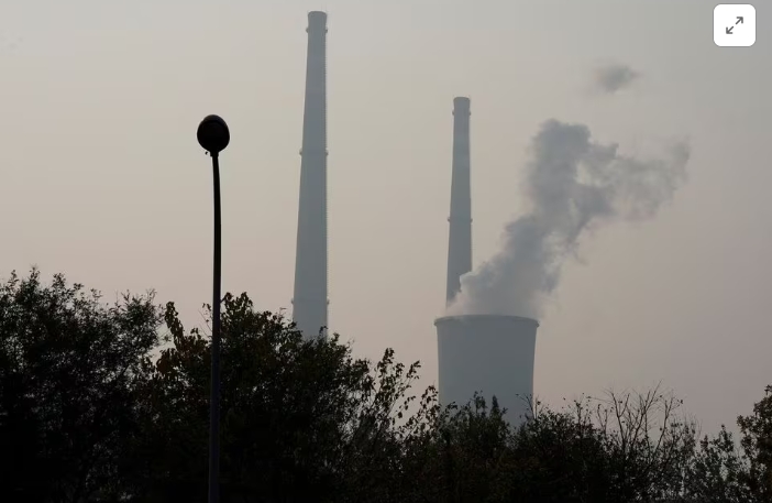 A cooling tower and chimneys are seen at a thermal power plant on a polluted day in Beijing, China, November 3, 2018. REUTERS/Jason Lee/File Photo Acquire Licen