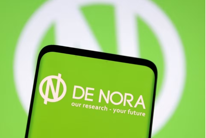 De Nora logo is displayed on a smartphone in this illustration taken June 13, 2022. REUTERS/Dado Ruvic/Illustration/File Photo Acquire Licensing RightsItalian e