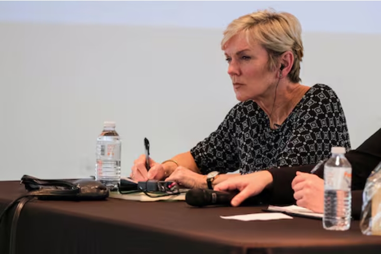 U.S. Secretary of Energy Jennifer Granholm listens to questions from the audience during the PR100 event in Orocovis, Puerto Rico, March 28, 2023. REUTERS/Gabri