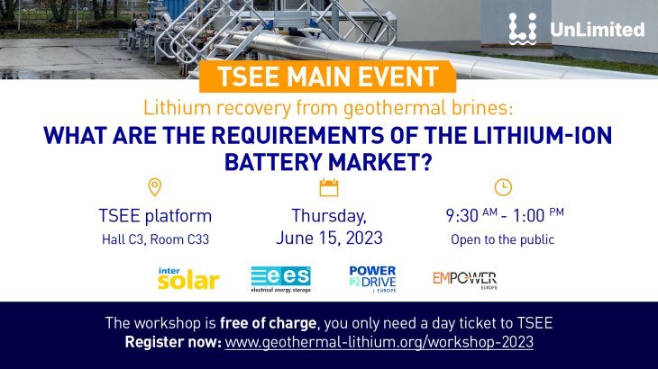 Registration is currently open for a workshop on lithium extraction from geothermal brines hosted by the "UnLimited" research project in Munich on 15 June 2023.
